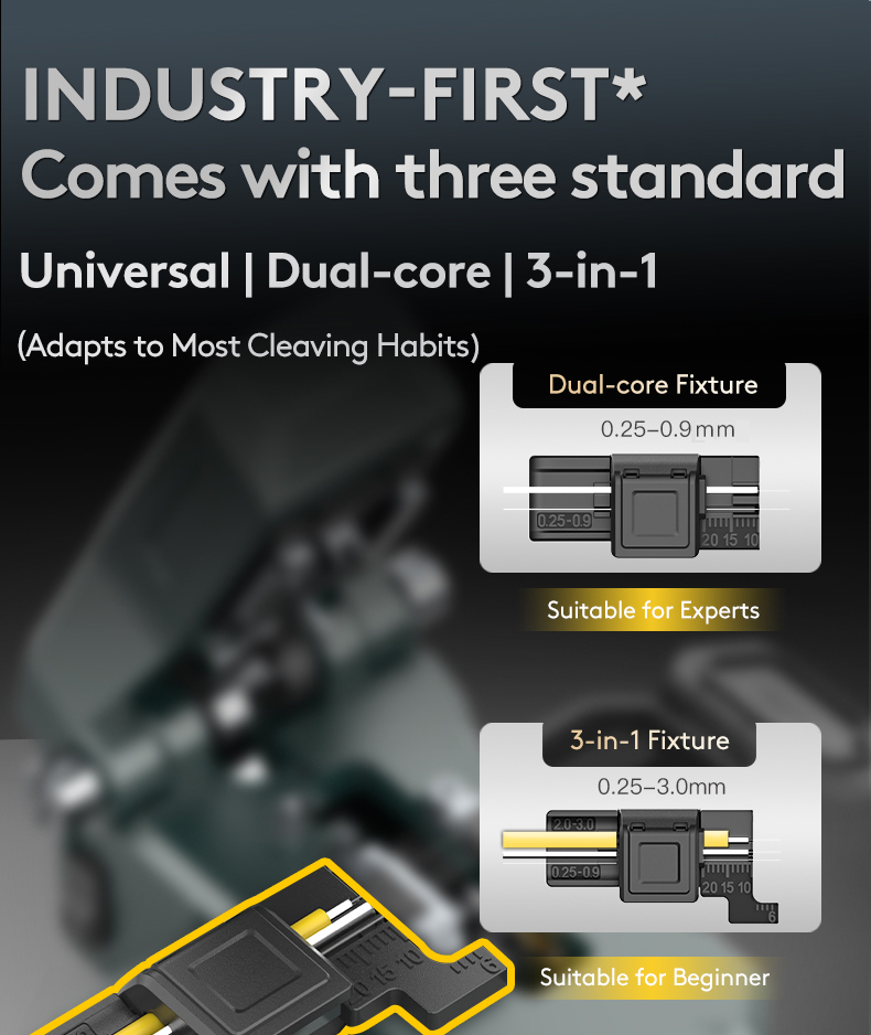 Comes with three standard fixtures (Universal / Dual-core / 3-in-1)